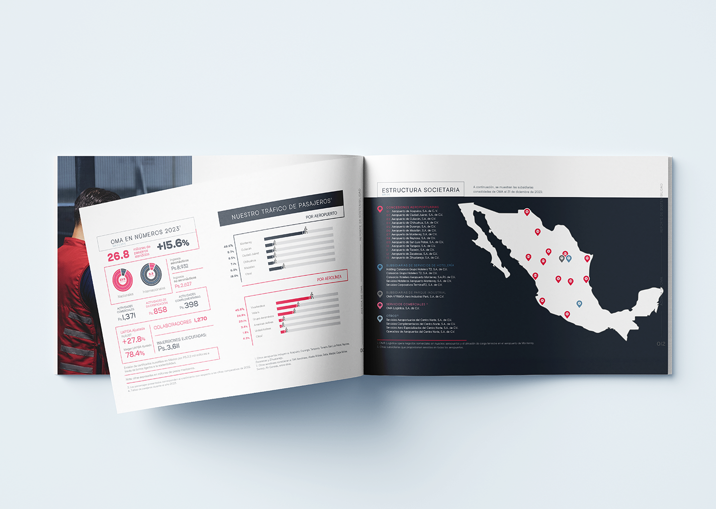 Con un diseño editorial claro, visualmente atractivo y estructurado para facilitar la comprensión de la información, el reporte refuerza el liderazgo de OMA en la industria aeroportuaria, destacando su visión de un futuro más sostenible, seguro y eficiente para todos.