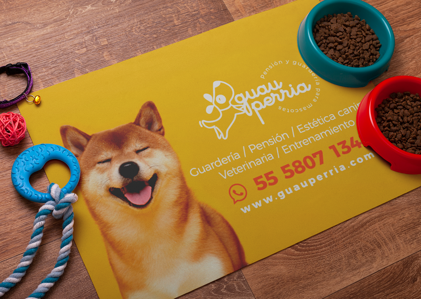 El desarrollo de la identidad de Guauperría busca transmitir calidez, confianza y profesionalismo. La marca se diseñó con un enfoque amigable y tierno, reflejando la esencia de un espacio pensado para el bienestar animal. La identidad visual incorpora elementos gráficos que evocan cercanía y alegría, sin perder la seriedad y capacitación que respaldan el servicio.